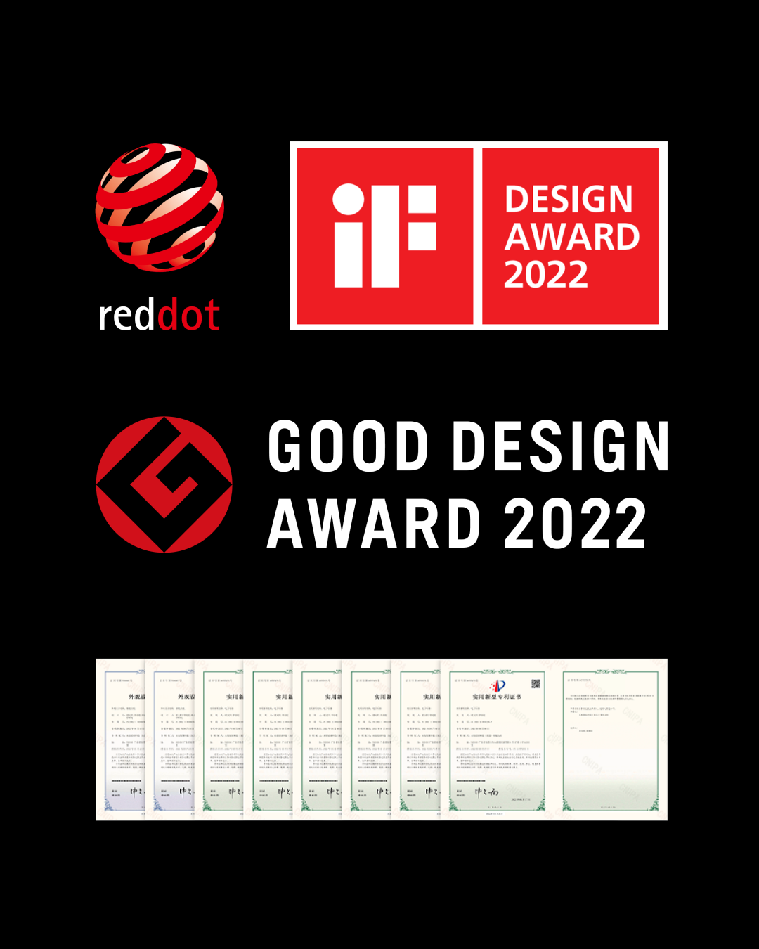 Winner of 3 major “Design Oscars” (Red Dot, iF, Good Design), secured 8 core innovation patents.